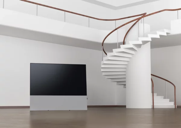 Il est également personnalisable, avec un panneau frontal décoratif disponible dans un choix de finitions en bois ou textile. Il peut être décliné dans des tailles adaptées aux écrans de télévision de 55 à 77 pouces, tandis que la fixation hybride de CANVAS permet un montage mural ou au sol.